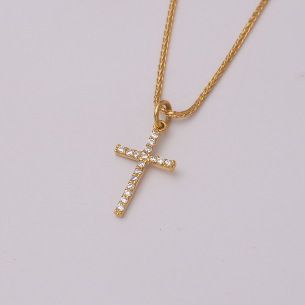 22KT YELLOW GOLD CROSS PENDANT WITH SWAROVSKI