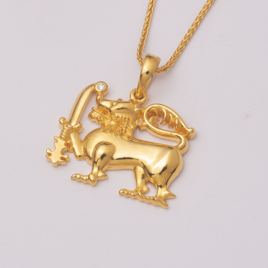 22KT YELLOW GOLD LION PENDANT WITH CVD DIANOND